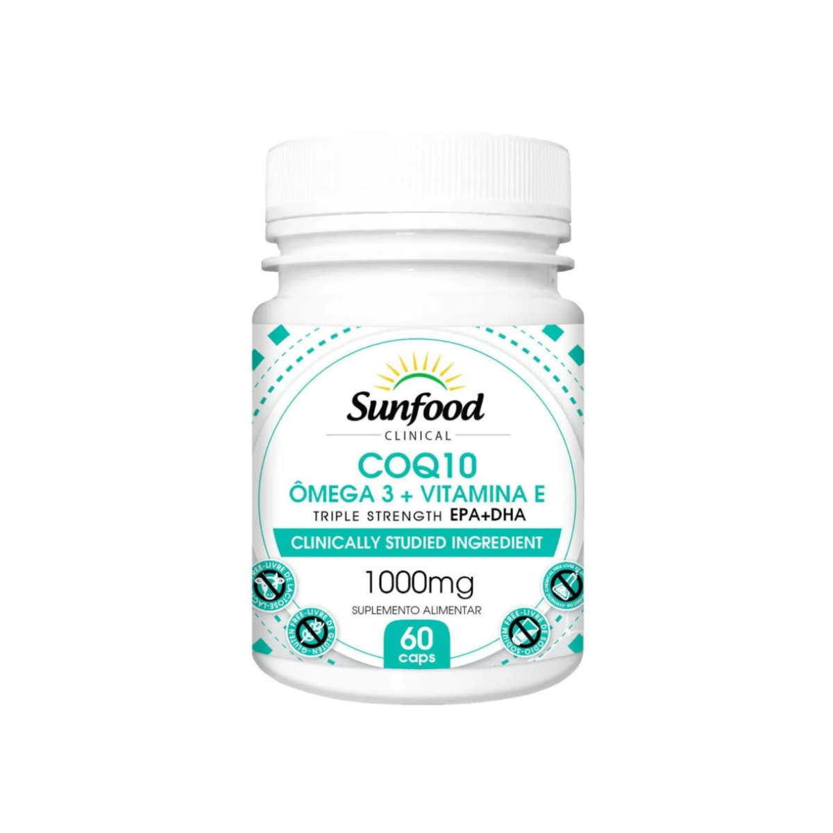 Pote com 60 cápsulas gelatinosas de Q10 + ômega 3 e Vitamina E - Sunfood